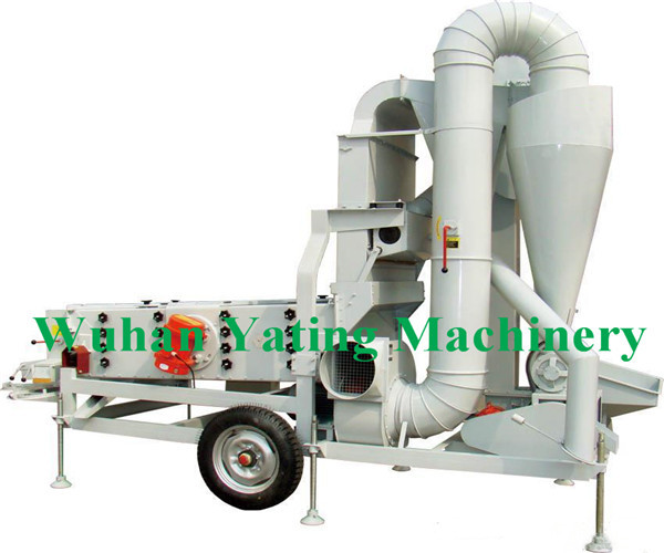 The double dedust cleaning machine is composed of ultra-low speed non crushing elevator, environmental protection dust remover, closed rotary ash discharge valve, vertical air screen and vibration classification screen. The material is lifted to the vertical air screen by the non crushing elevator. According to the different weight of the material and the impurity, the light impurity is removed by air separation, and then enters the vibration classification screen. According to the external dimension of the material, the precision punching screen pieces of different specifications are adjusted to remove the large and small impurities. At the same time, the finished material is divided into large particles, medium particles and small particles by increasing or decreasing the number of layers of the screen pieces, It can be used for cleaning and processing of wheat, rice, corn, barley, pea and other crop seeds, and also for cleaning and processing of various grains.